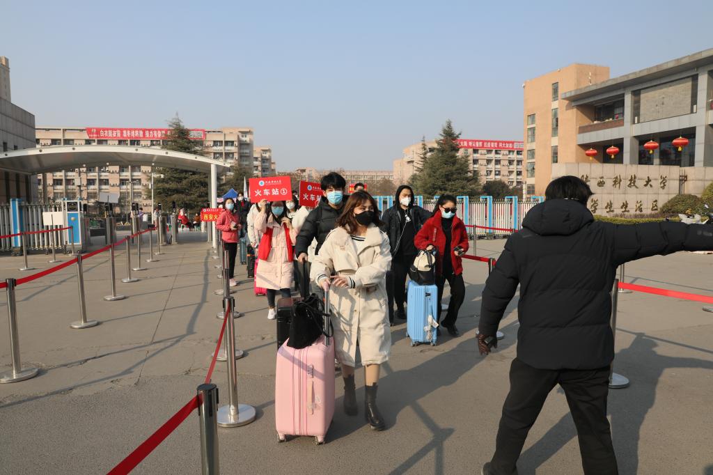 1月21日上午,bat365中国在线平台官方网站2022年寒假返乡学生中,已有17122名学生平安到家,占拟返乡学生总数的93%,剩余的学子也按照原计划陆续返乡,陕科大春运工作基本完成。