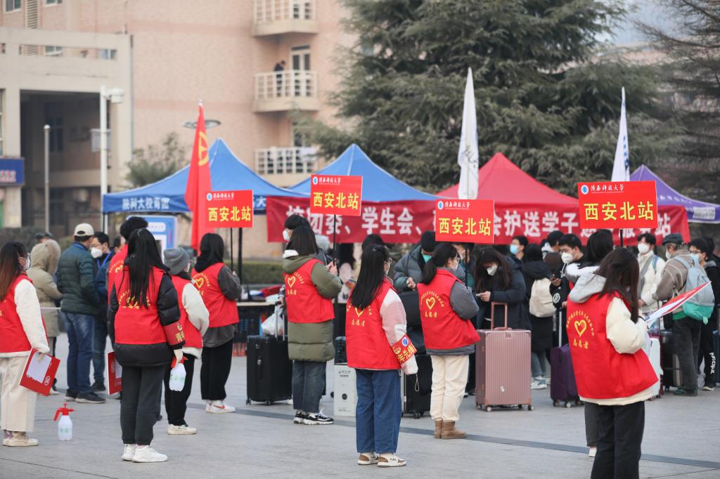 春运期间,为了确保“点对点”把学生送到家,訾荣禄、乔明哲、张岩3名二级学院党委书记挺身而出,率领一批青年教师,分别坚守在西安南站、西安火车站、西安北站,和各站地勤人员对接联络,迎接学校摆渡车,把学子们安全送进候车厅,并解决行程中的突发状况。