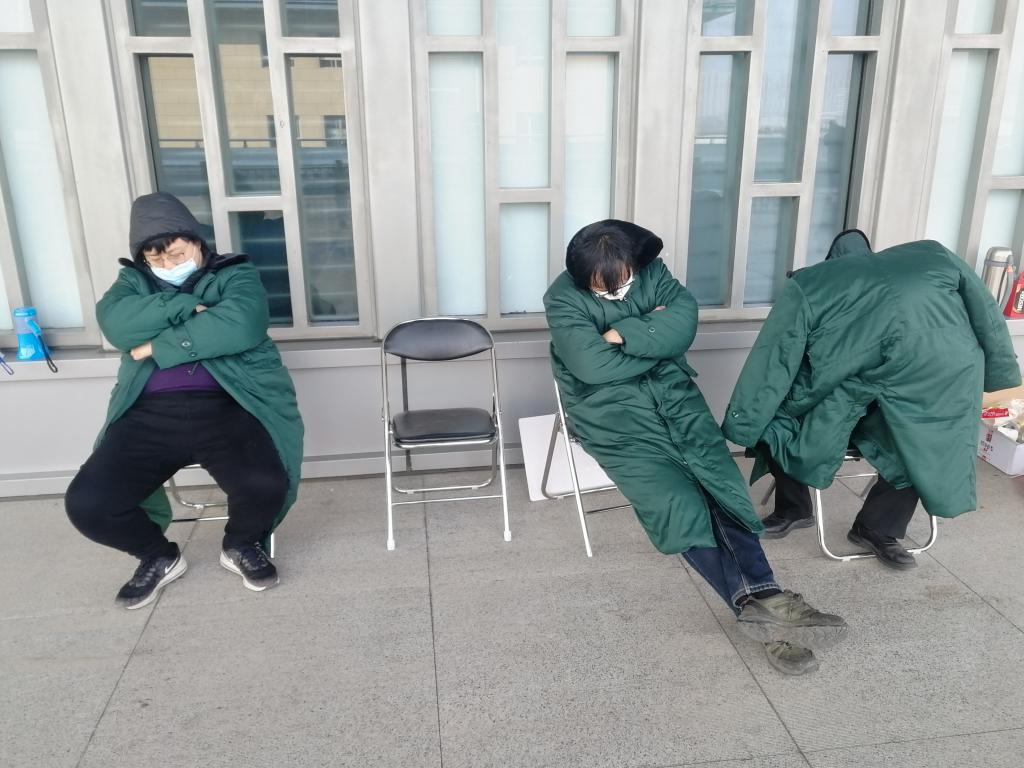 北客站出发平台地势高、风力大,张岩带领7名青年教师,每天凌天4点起床就出发,迎接365官网到站的第一批学生。为了给学生节省候车时间,他们身穿军大衣来回奔跑,每人每天要走3万多步,有的教师累得坐在椅子上就睡着了,送完每天最后一批学生,已经是夜里8点了,他们才披星戴月地回学校。