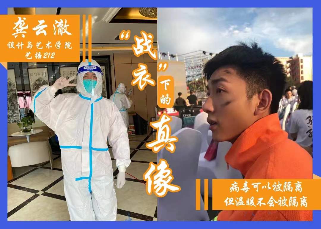 全员核酸检测志愿者、21级本科生龚云澈不仅曾在南、北两区的文体馆内协助医护人员进行现场采样,还和他们一道外出上门采样。“做核酸检测志愿者,特别是去给隔离的人做上门核酸,肯定是有风险,心里确实是有一些顾虑和犹豫。”但他仍然选择背起沉重的采样箱、穿起闷热的防护服,在校外隔离点、沁园小区居家隔离户、学生公寓隔离宿舍、校医院之间步行穿梭,在一些未安装电梯的楼内爬上爬下,继续核查录入扫码信息,继续为医护人员递棉签、送试管。口罩、手套,面屏、脚套,这样的全副武装让每一个平时简单的动作都要花费更大的力气才能完成,半天下来,人就累得汗流浃背、筋疲力尽。“我们有4名男生志愿者和医护人员共同承担校内300多名隔离人员及行动不便者的历次核酸采样工作。他们没人说害怕,没人退缩,但上门回来,他们会半认真半开玩笑地说想给自己再加测一次核酸,让人心疼。”校青团团长李书阳动情地谈起这些承担工作危险系数最大,难度、强度最高的“战友”们。