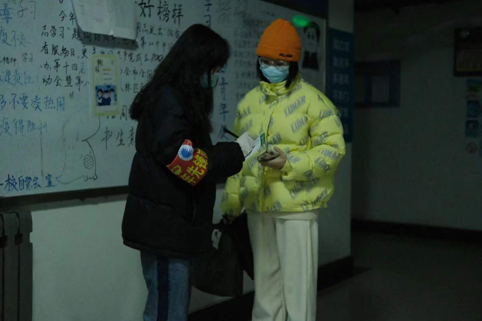 他们是全员坚持提前10分钟到岗,每逢“先锋队”群内有临时工作志愿者招募,必定拼尽“手速”,30秒内把志愿者名额抢光的6公寓先锋队志愿者;她们是贴着“暖宝宝”站在公寓大门风口处,“超长待机”应对最大公寓人流量,默默承担着20层750间宿舍同学就餐时段进出打卡任务的14公寓先锋队志愿者;他们是每一个匆匆忙忙、坚定无畏,毫无怨言、迎难而上的公寓里的“红袖章”。