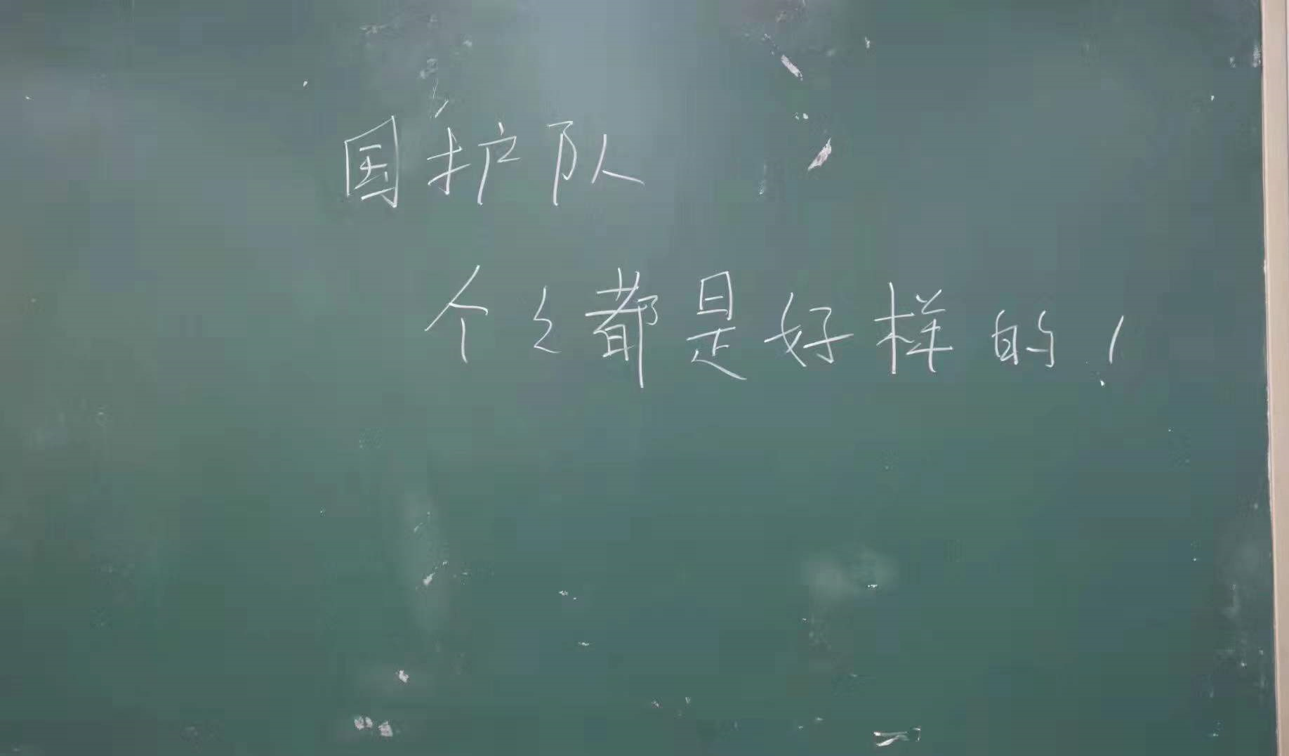 12月25日中午,一号教学楼F座的教室内,执行2022年全国硕士研究生招生考试bat365中国在线平台官方网站考点执勤任务的国旗护卫队队员们,正利用短暂的午休时间匆匆吃着盒饭,正在教室休息的一位监考老师突然起身走向黑板,拿起粉笔用力写下一行大字——“国护队个个都是好样的!”,抬头看到这句话,不少队员眼中都泪花闪烁。