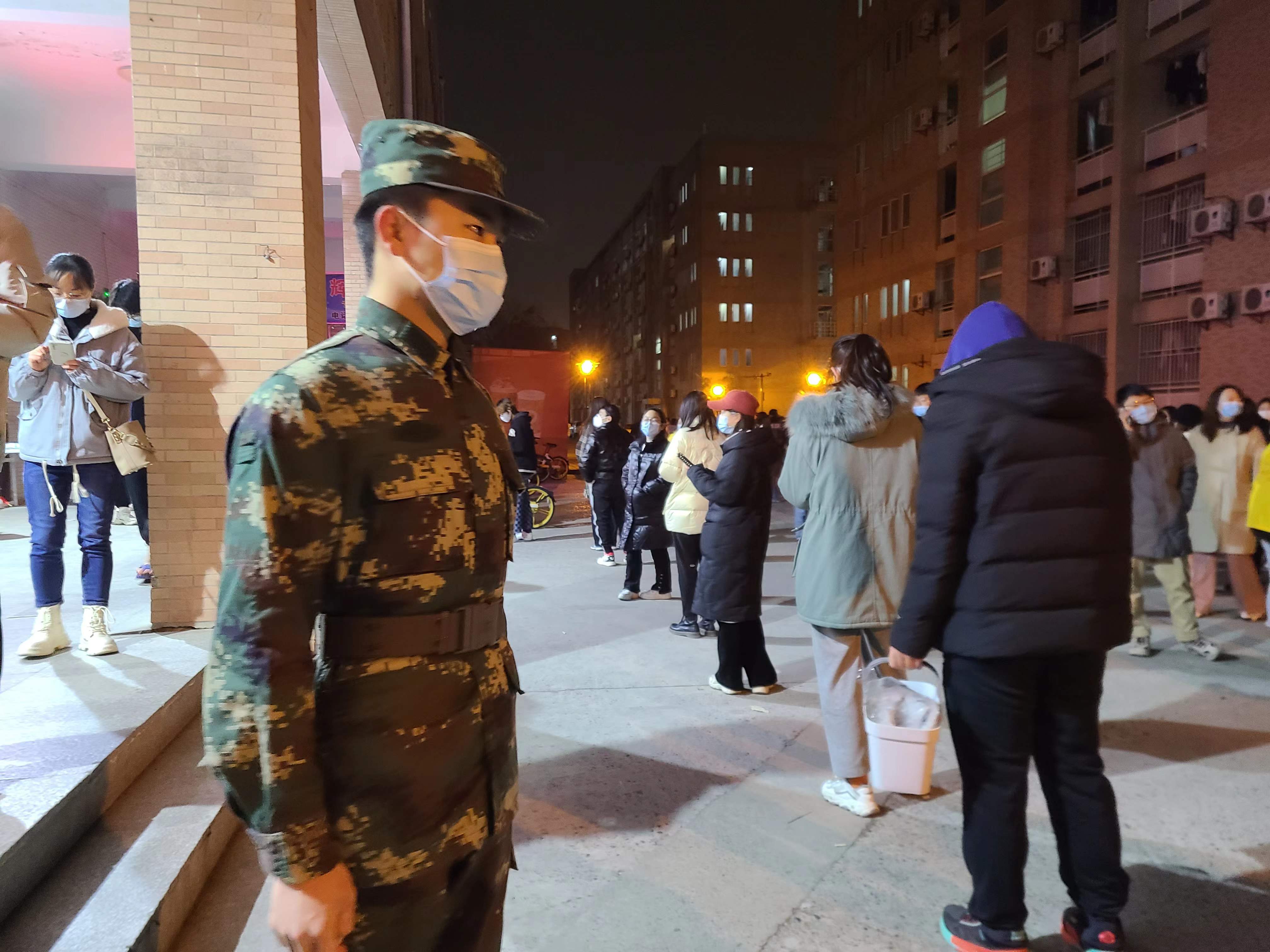 此时,退役大学生士兵、在读研究生吴彬正在14公寓门口的督查岗执勤,这班岗的时间是从19点至21点。可晚上10点多,从科大超市维持秩序归来的张颢淼经过时,意外地看到吴彬仍然保持标准的跨立动作,身姿挺拔地站在公寓门前。冬夜严寒,他问吴彬怎么还不下岗,吴彬却答道:“同学们还在陆续回来,我再站一会儿岗。”