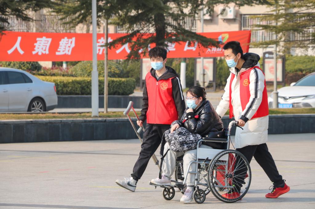 12月31日,食品215班的其曼古丽同学在学校核酸检测志愿岗上从下午3点一直忙到晚上7点,防护面罩已经被汗水氤氲,模糊不清,胳膊也快抬不起来了,正在录入检测信息的她忽然看到一只温暖的手,向她递来2颗棒棒糖和一张心形卡片,上面写着“辛苦了!向最美‘逆行者’致敬!”她正想感谢,那名女生给了她一个大大的笑脸,就转身离去了。其曼古丽说:“在志愿岗位上,我们经常能被同学们小小的善意所温暖,感觉整个校园充满了正能量。”