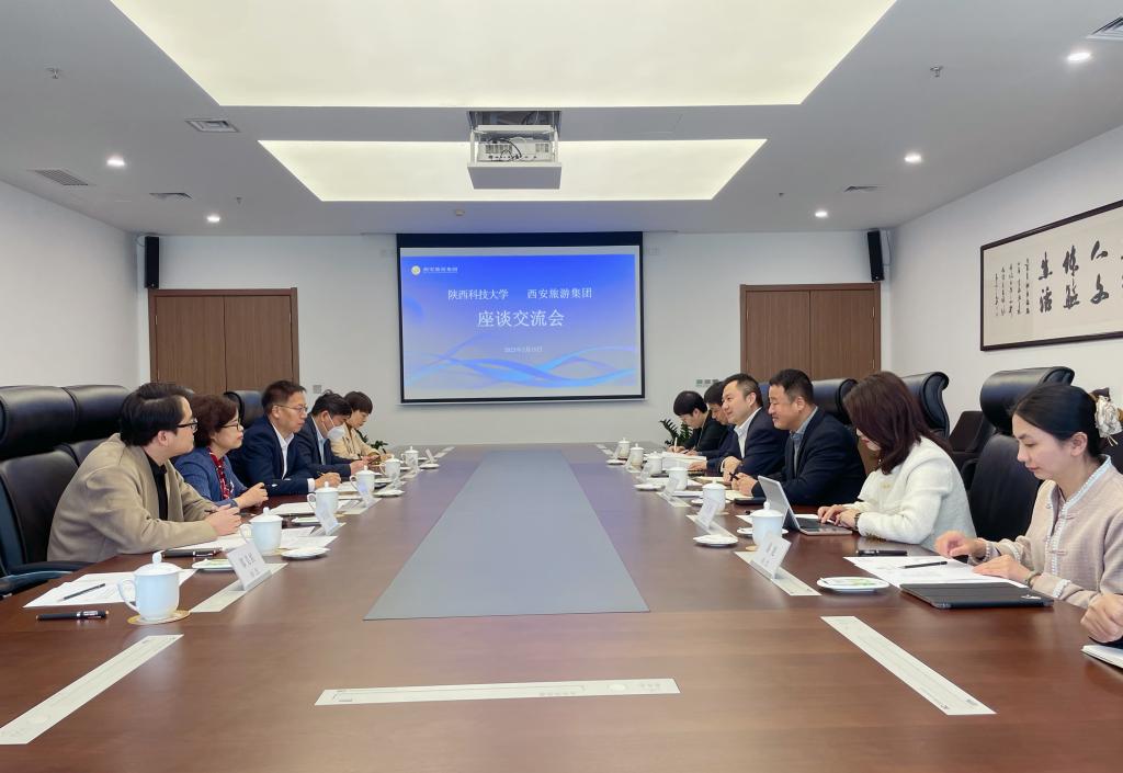 西安旅游集团党委副书记、总经理陆飞,党委委员、副总经理韩佳卫,办公室副主任李伟、品牌文化部副部长王婷、人力资源部副部长安美玲、文化产业投资有限公司副总经理秦旭接待了365官网一行,双方就人才需求、产研融合、校企合作等方面开展了座谈交流。
