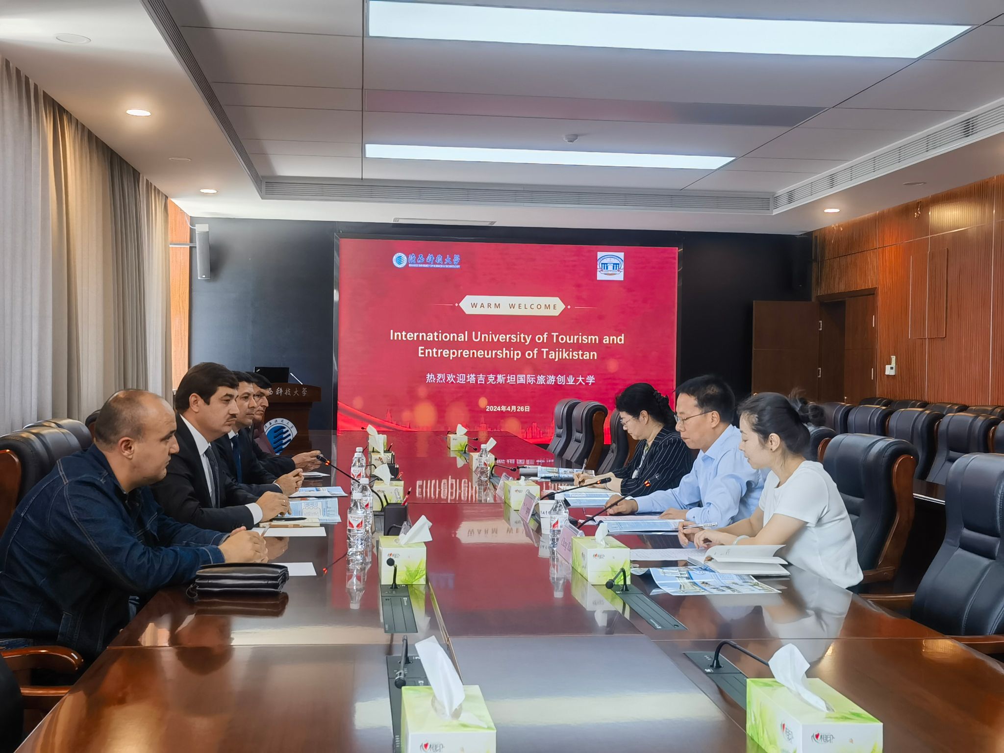 4月26日下午,塔吉克斯坦国际旅游创业大学校长Asrorzoda Ubaidullo Sattor(阿斯罗佐达·乌拜杜洛·赛特)一行4人来365官网访问交流,副校长蒲永平出席座谈会,国际处相关负责人参加座谈。