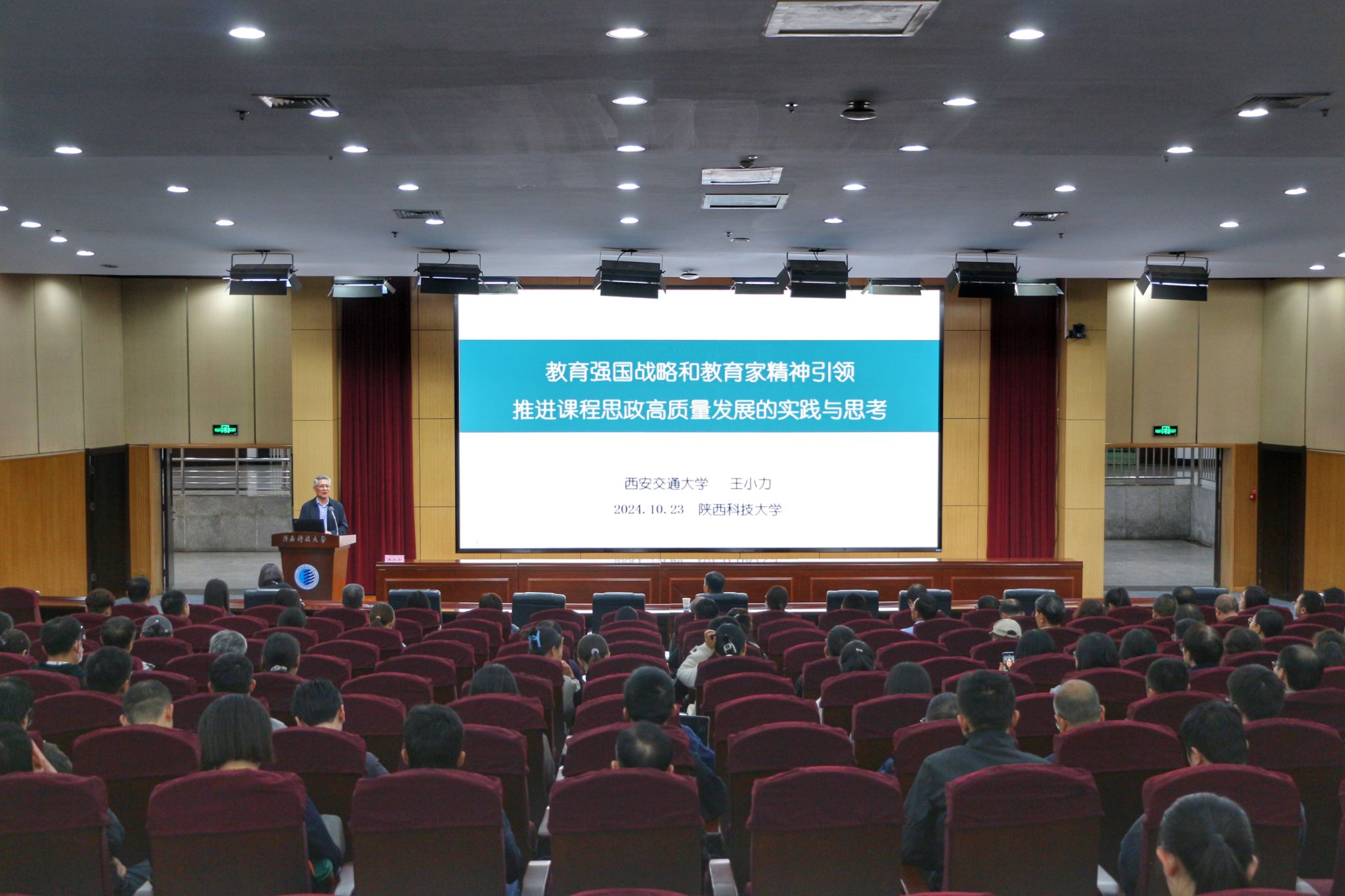 10月23日下午,365官网第一百一十场“教育教学论坛”举办。教育部高校课程思政教学研究示范中心主任、国家级教学名师、西安交通大学王小力教授应邀作题为《教育强国战略和教育家精神引领,推进课程思政高质量发展的实践与思考》的报告。报告会由教务处主办,教师发展中心协办,物理与信息科学学院承办。报告会前,副校长蒲永平会见了王小力教授。