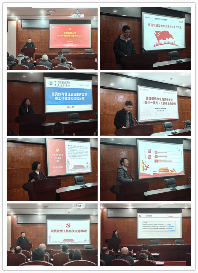 在交流发言环节,设计与艺术学院(丝路文化与传播学院)、轻工科学与工程学院(柔性电子学院)、食品科学与工程学院(生物与医药学院)党委组织员分别围绕党员发展、组织关系转接、党员教育管理、党支部标准化规范化建设等进行了交流汇报。组织部各业务负责同志分别就党员发展、组织生活会、主题党日、民主评议党员、组织关系转接、党费收缴等进行了业务培训和工作安排部署。