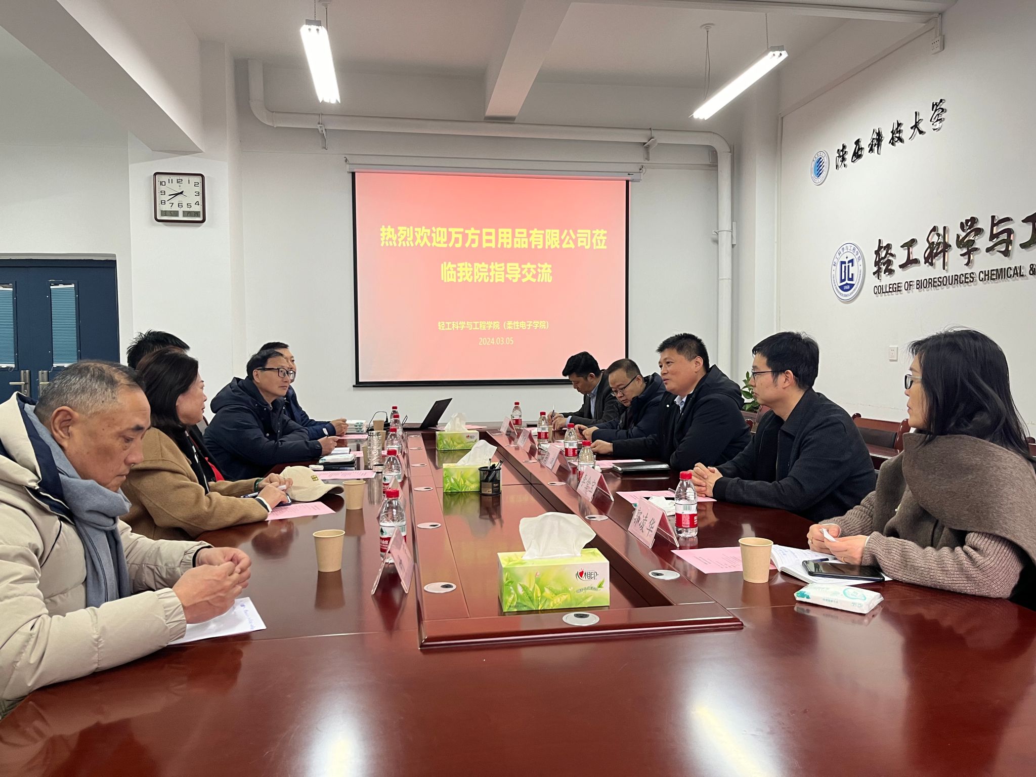 3月5日,旌德县万方日用品有限公司总经理杨涛一行五人赴轻工科学与工程学院(柔性电子学院)开展合作交流。轻工学院、校科技处相关教师参加交流座谈活动。