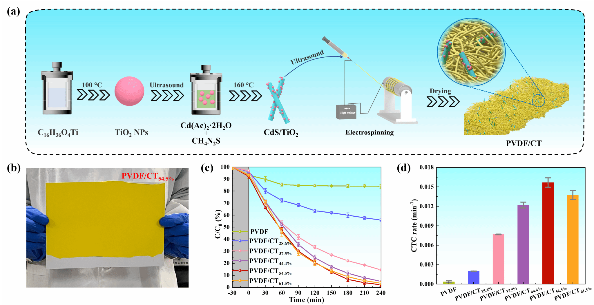 W. Li*, G. Liao, W. Duan, F. Gao, Y. Wang, R. Cui, X. Wang, C. Wang*, Synergistically electronic interacted PVDF/CdS/TiO2 organic-inorganic photocatalytic membrane for multi-field driven panel wastewater purification, Appl. Catal. B-Environ. https://doi.org/10.1016/j.apcatb.2024.124108